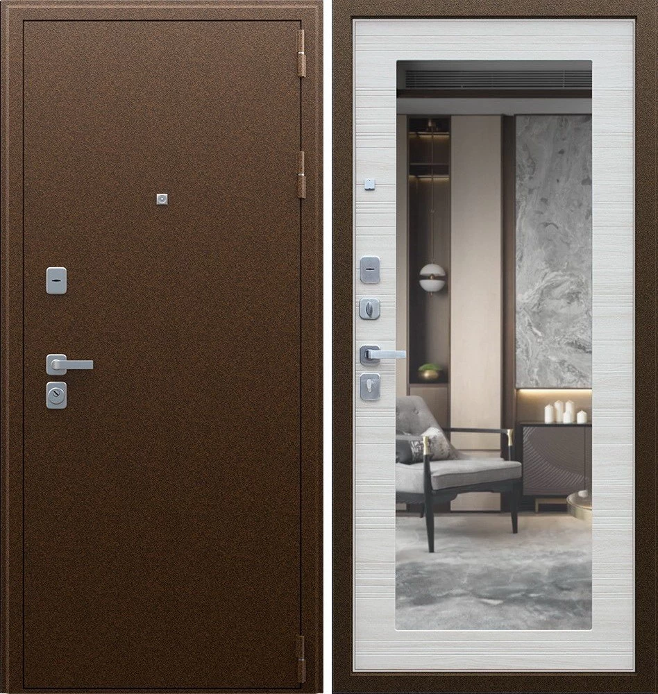 Надежная входная Дверь Спартак с зеркалом Акация Светлая Поперечная премиум класса по цене 36 571 руб. Большая толщина стали защитит от проникновения в ваш дом, квартиру или коттедж. Используется очень качественная фурнитура: замки, цилиндры, ручки, защелки. Покрытие и отделка двери изготовлено под внимательным контролем производителя. Дверь имеет долгий срок службы и гарантию.