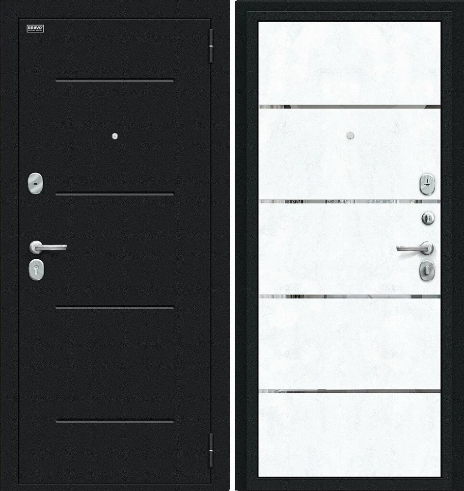 Надежная входная Дверь Браво Лайн Букле черное/Snow Art премиум класса по цене 30 141 руб. Большая толщина стали защитит от проникновения в ваш дом, квартиру или коттедж. Используется очень качественная фурнитура: замки, цилиндры, ручки, защелки. Покрытие и отделка двери изготовлено под внимательным контролем производителя. Дверь имеет долгий срок службы и гарантию.