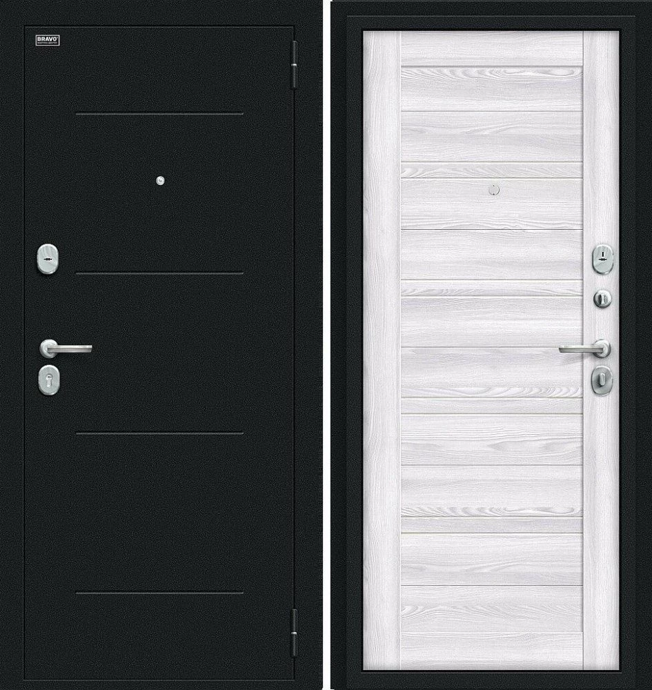 Надежная входная Дверь Браво Сити Kale Букле черное/Riviera Ice премиум класса по цене 35 571 руб. Большая толщина стали защитит от проникновения в ваш дом, квартиру или коттедж. Используется очень качественная фурнитура: замки, цилиндры, ручки, защелки. Покрытие и отделка двери изготовлено под внимательным контролем производителя. Дверь имеет долгий срок службы и гарантию.