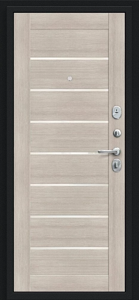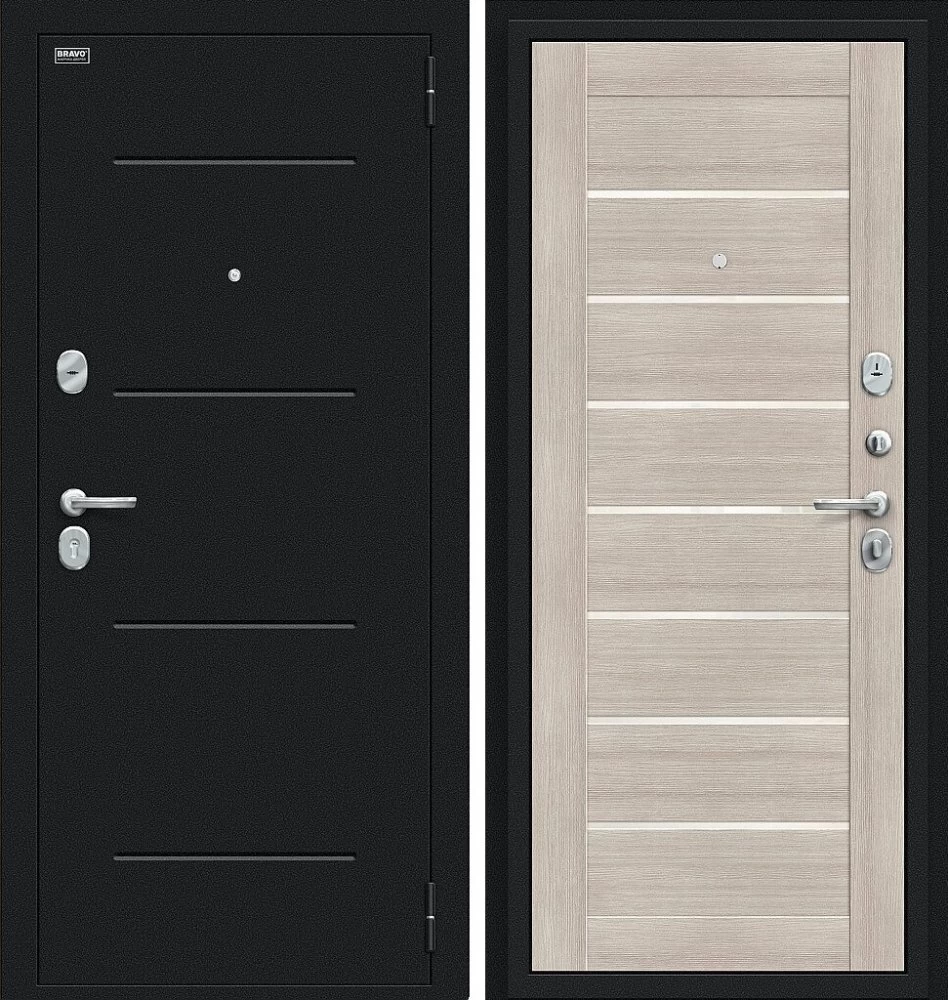 Надежная входная Дверь Браво Техно Букле черное/Cappuccino Veralinga премиум класса по цене 31 421 руб. Большая толщина стали защитит от проникновения в ваш дом, квартиру или коттедж. Используется очень качественная фурнитура: замки, цилиндры, ручки, защелки. Покрытие и отделка двери изготовлено под внимательным контролем производителя. Дверь имеет долгий срок службы и гарантию.
