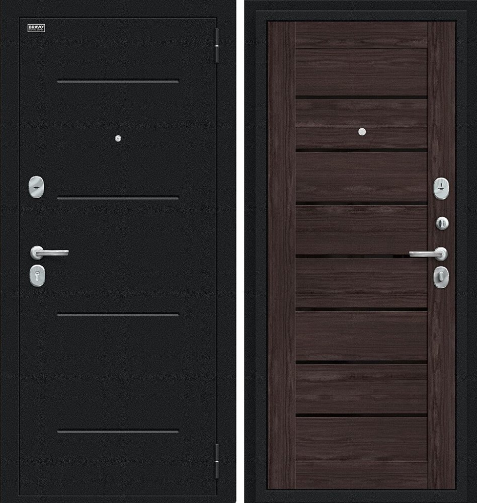 Надежная входная Дверь Браво Техно Букле черное/Wenge Veralinga премиум класса по цене 31 421 руб. Большая толщина стали защитит от проникновения в ваш дом, квартиру или коттедж. Используется очень качественная фурнитура: замки, цилиндры, ручки, защелки. Покрытие и отделка двери изготовлено под внимательным контролем производителя. Дверь имеет долгий срок службы и гарантию.