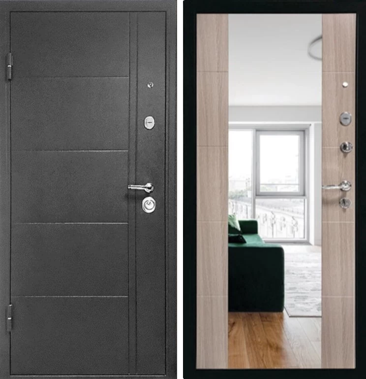 Надежная входная Дверь Эверест Зеркало Сандал Серый премиум класса по цене 33 851 руб. Большая толщина стали защитит от проникновения в ваш дом, квартиру или коттедж. Используется очень качественная фурнитура: замки, цилиндры, ручки, защелки. Покрытие и отделка двери изготовлено под внимательным контролем производителя. Дверь имеет долгий срок службы и гарантию.