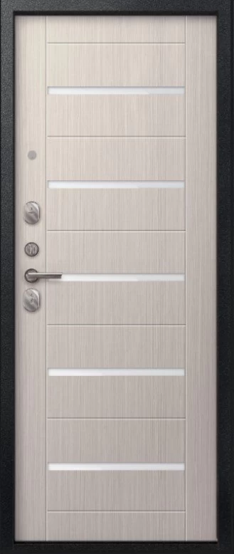 Надежная входная Дверь V-05 Черный муар - Лиственница светлая премиум класса по цене 42 071 руб. Большая толщина стали защитит от проникновения в ваш дом, квартиру или коттедж. Используется очень качественная фурнитура: замки, цилиндры, ручки, защелки. Покрытие и отделка двери изготовлено под внимательным контролем производителя. Дверь имеет долгий срок службы и гарантию.