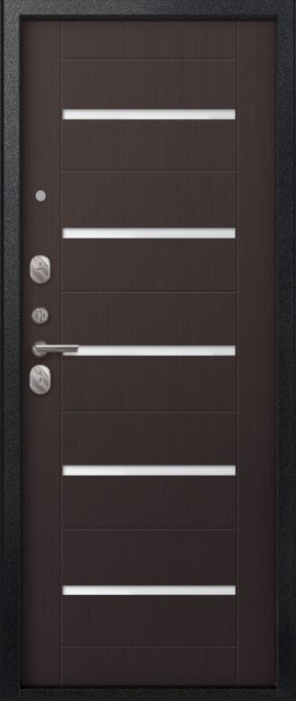 Надежная входная Дверь V-05 Черный муар - Темная лиственница премиум класса по цене 41 921 руб. Большая толщина стали защитит от проникновения в ваш дом, квартиру или коттедж. Используется очень качественная фурнитура: замки, цилиндры, ручки, защелки. Покрытие и отделка двери изготовлено под внимательным контролем производителя. Дверь имеет долгий срок службы и гарантию.