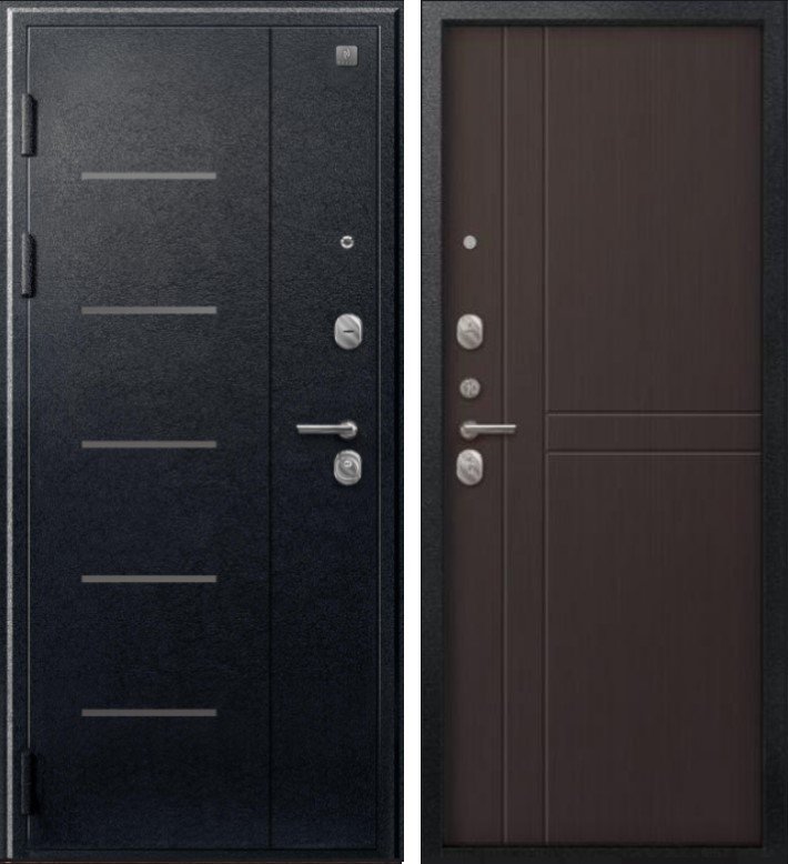 Надежная входная Дверь V-06 Черный муар - Лиственница темная премиум класса по цене 38 921 руб. Большая толщина стали защитит от проникновения в ваш дом, квартиру или коттедж. Используется очень качественная фурнитура: замки, цилиндры, ручки, защелки. Покрытие и отделка двери изготовлено под внимательным контролем производителя. Дверь имеет долгий срок службы и гарантию.